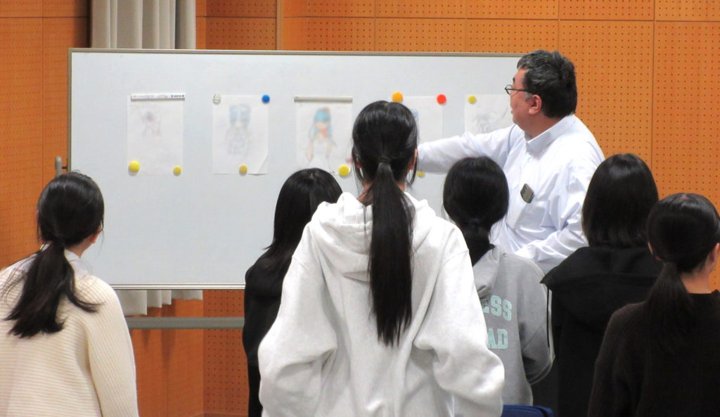 キャラクター設定を考えていただき、その後鉛筆画と色塗りの演習で個別指導をしました。